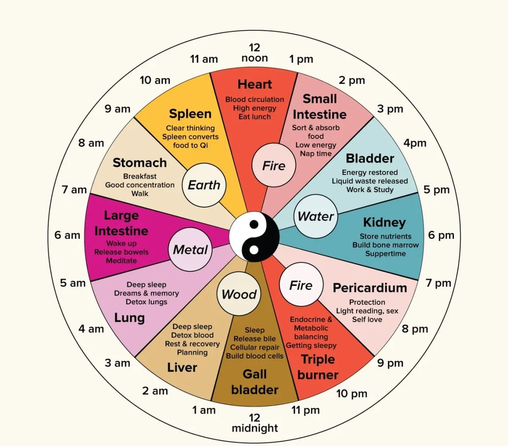 Ar pastebėjai, kad tam tikru paros metu jautiesi energingas, o kitu, pavargęs ar neramus? Tradicinė kinų medicina sako, kad mūsų kūnas turi vidinį laikrodį, kuris veikia pagal organų ritmus. Kiekvienas organas turi savo „aktyviausią“ laiką, kai dirba efektyviausiai.