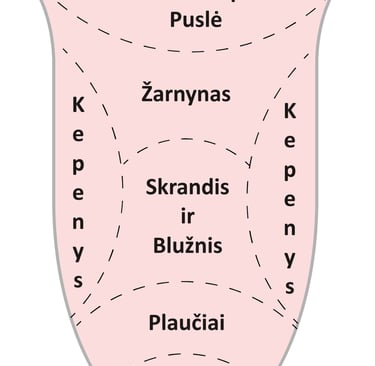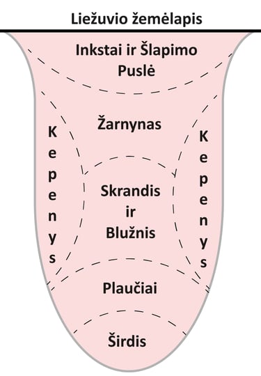 Liežuvio paviršius atitinka skirtingas organų zonas: