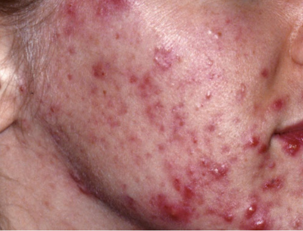 TKM interpretacija: didesni, gilesni nei papulės, gali būti uždegiminiai ar cistiniai.