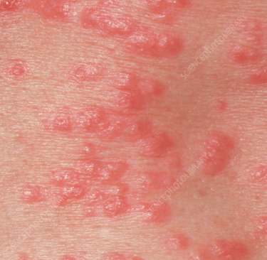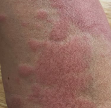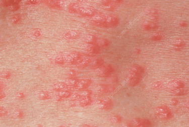 TKM interpretacija: laikini, raudoni, niežtintys bėrimai.